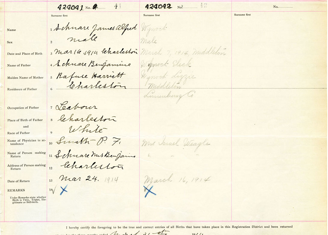Male Birth Registration: Year: 1914 number: 42400041