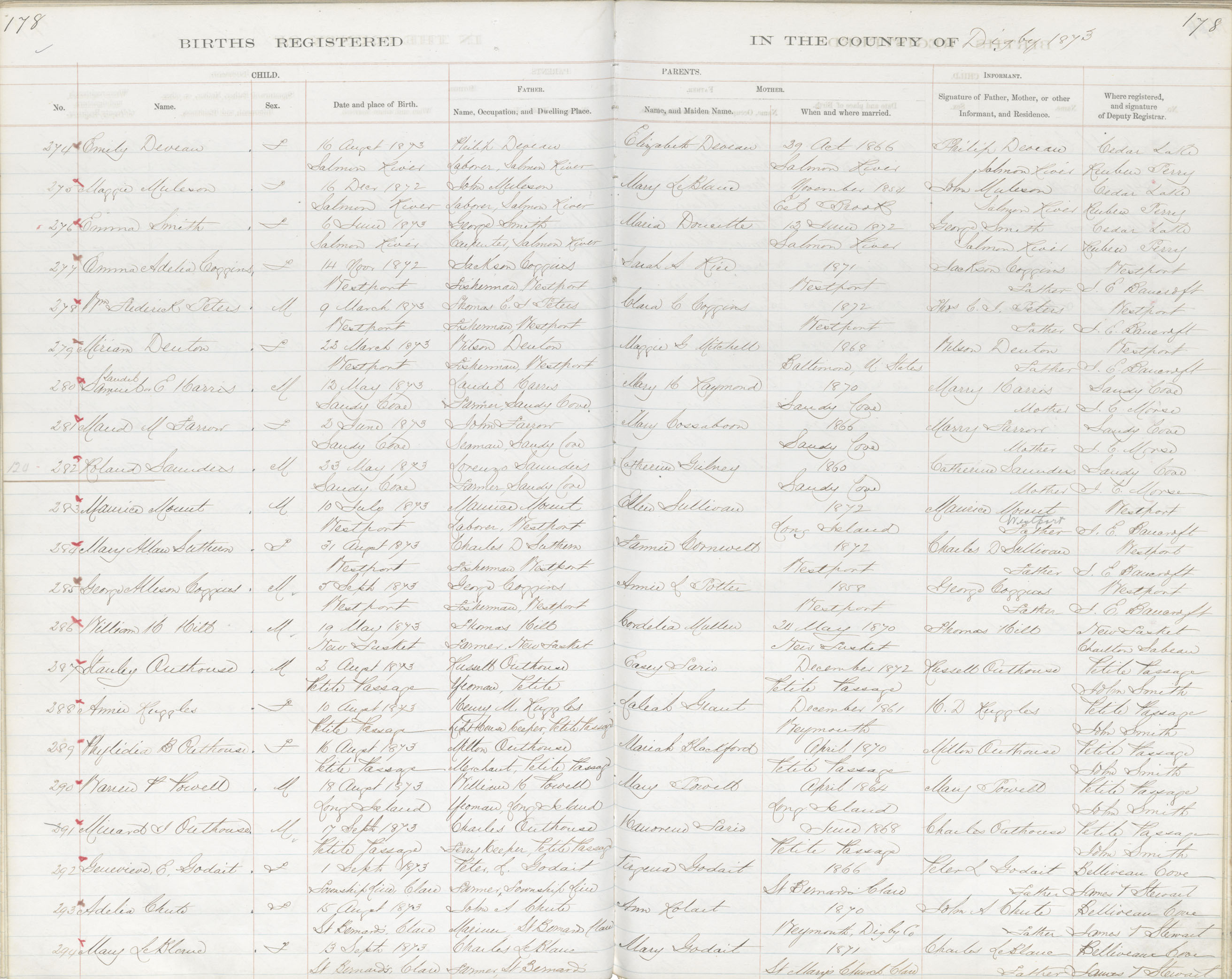 Birth Registration: Year: 1873 book: 1807 page: 178 number: 274
