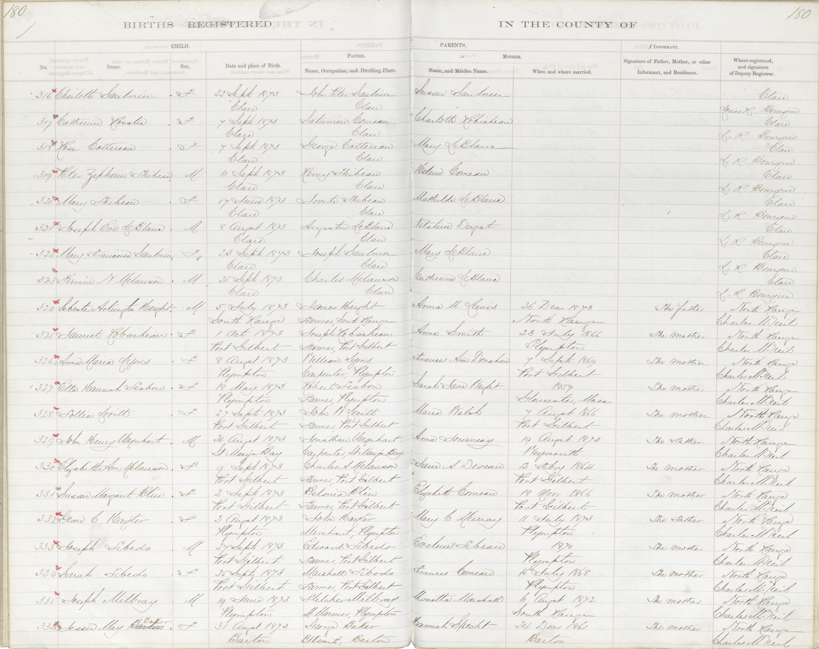 Birth Registration: Year: 1873 book: 1807 page: 180 number: 316