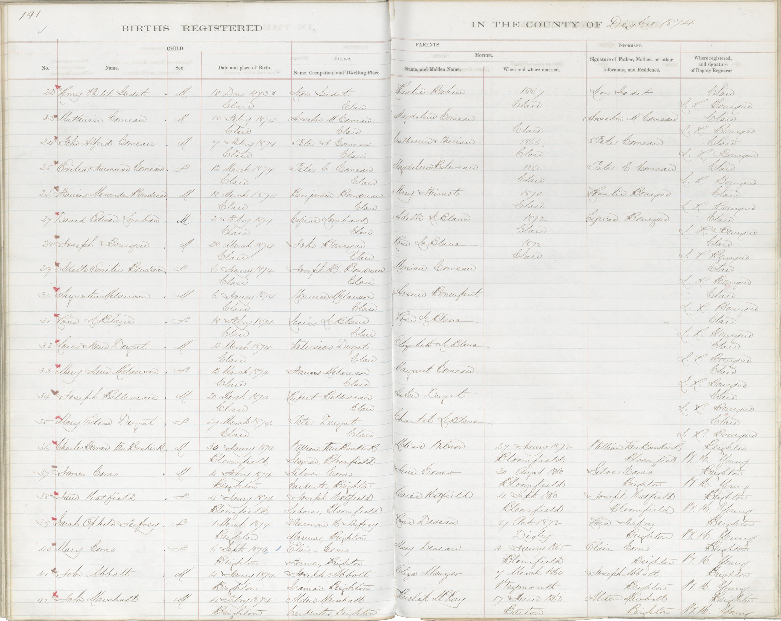 Birth Registration: Year: 1873 book: 1807 page: 191 number: 22