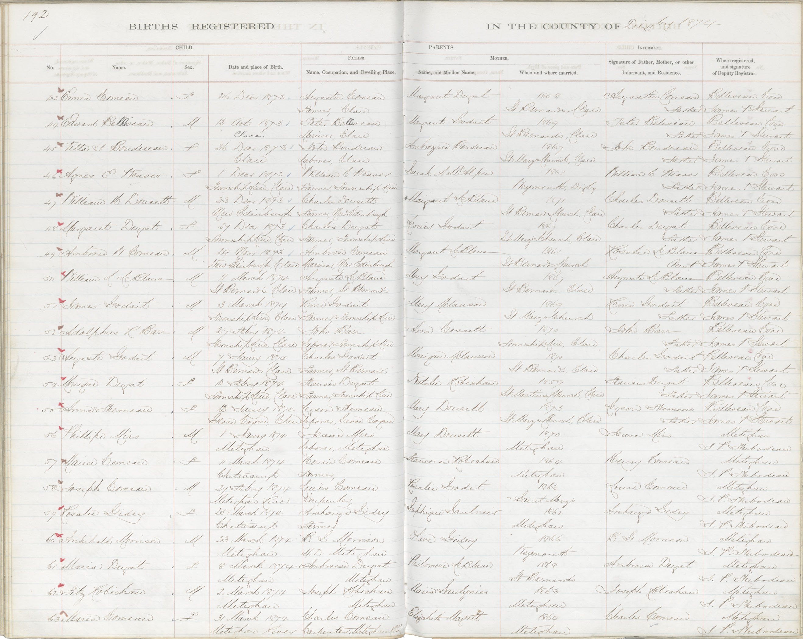 Birth Registration: Year: 1873 book: 1807 page: 192 number: 43