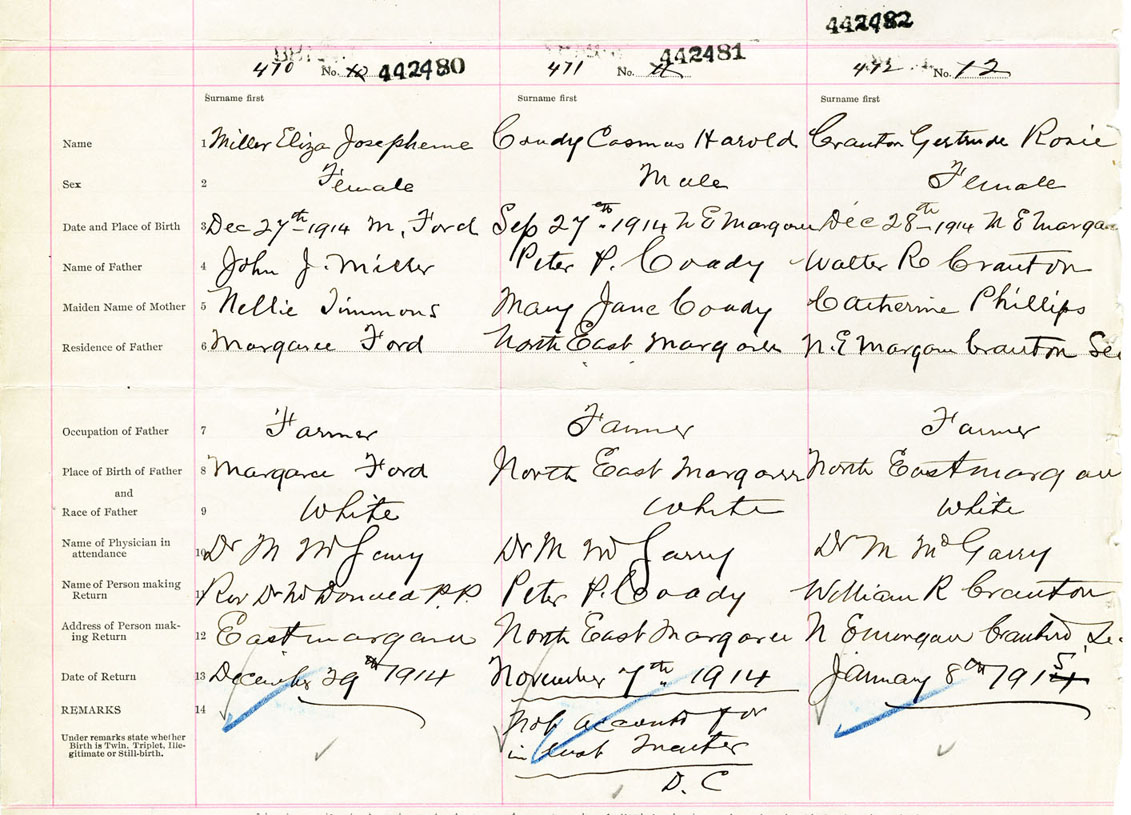 Female Birth Registration: Year: 1914 number: 44200482