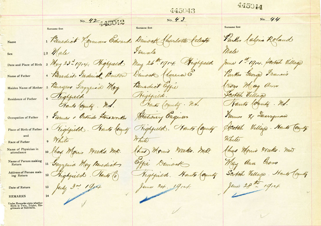 Male Birth Registration: Year: 1914 number: 44500044