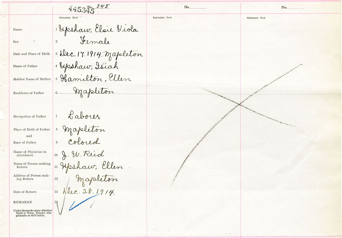 Female Birth Registration: Year: 1914 number: 44500345
