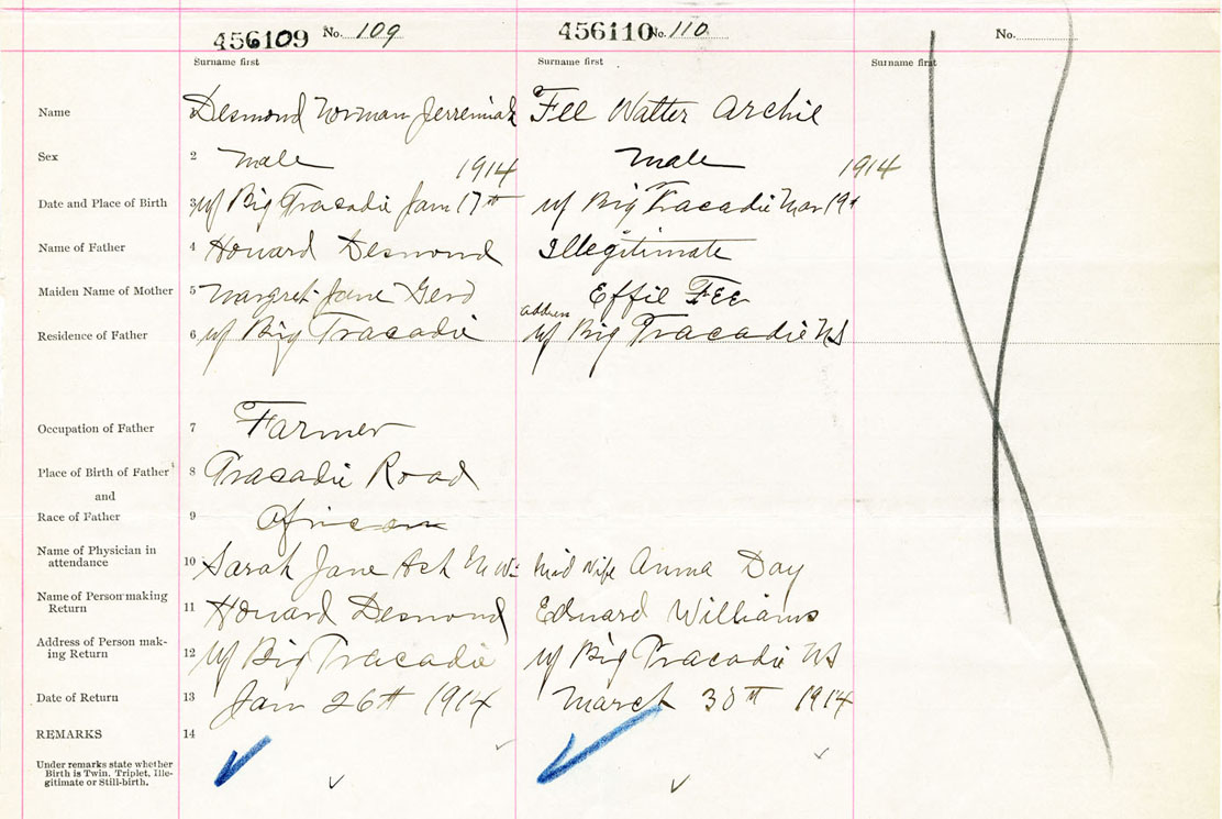 Male Birth Registration: Year: 1914 number: 45600110