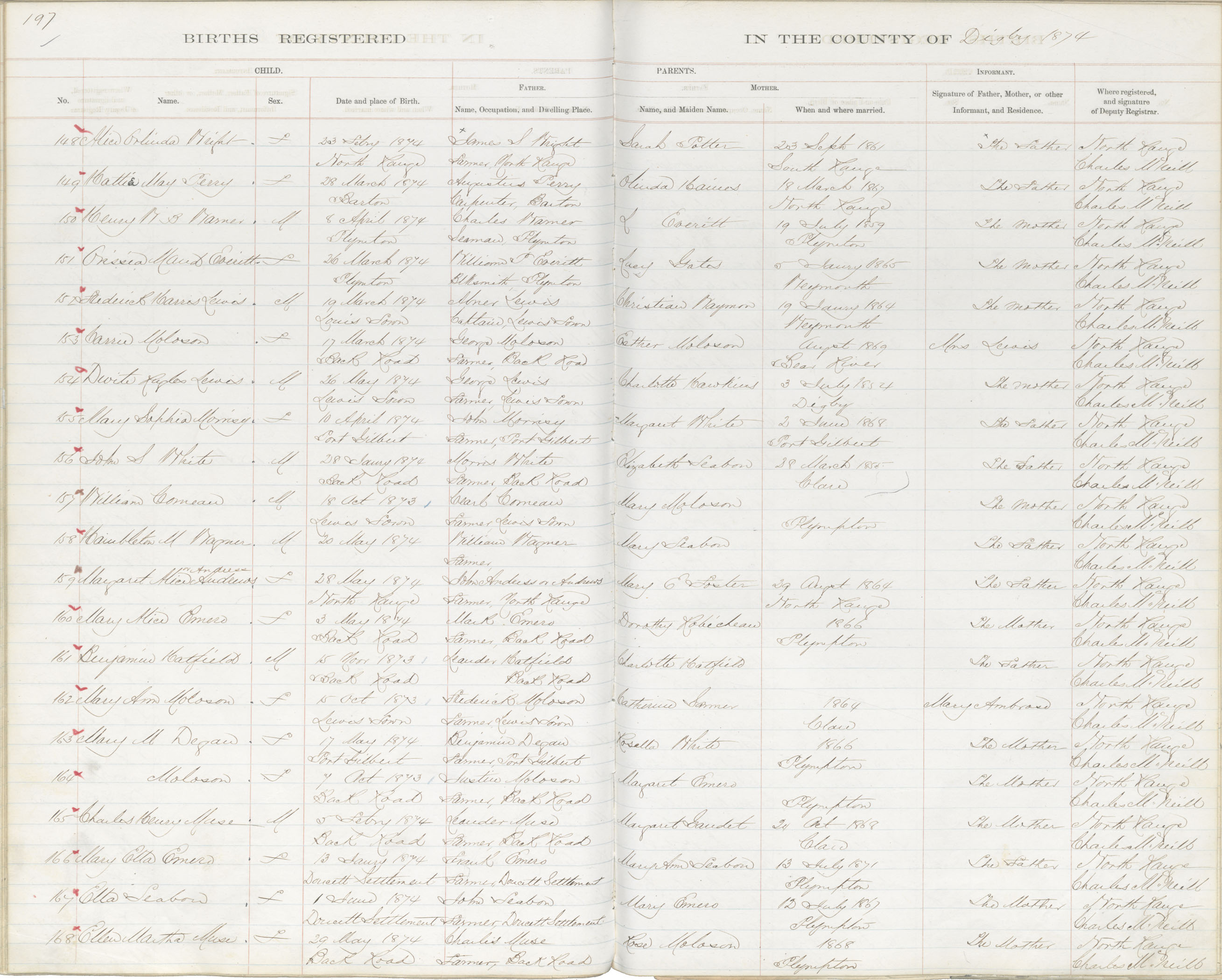 Birth Registration: Year: 1874 book: 1807 page: 197 number: 148