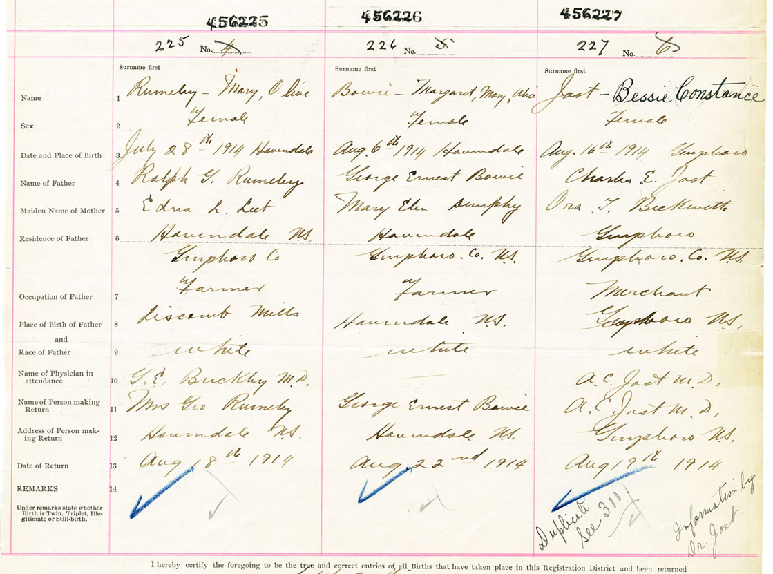 Female Birth Registration: Year: 1914 number: 45600225
