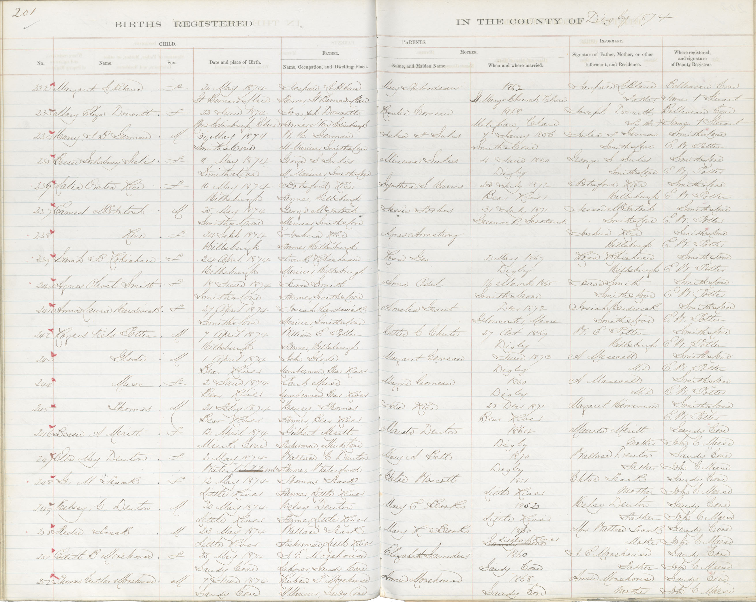 Birth Registration: Year: 1874 book: 1807 page: 201 number: 252