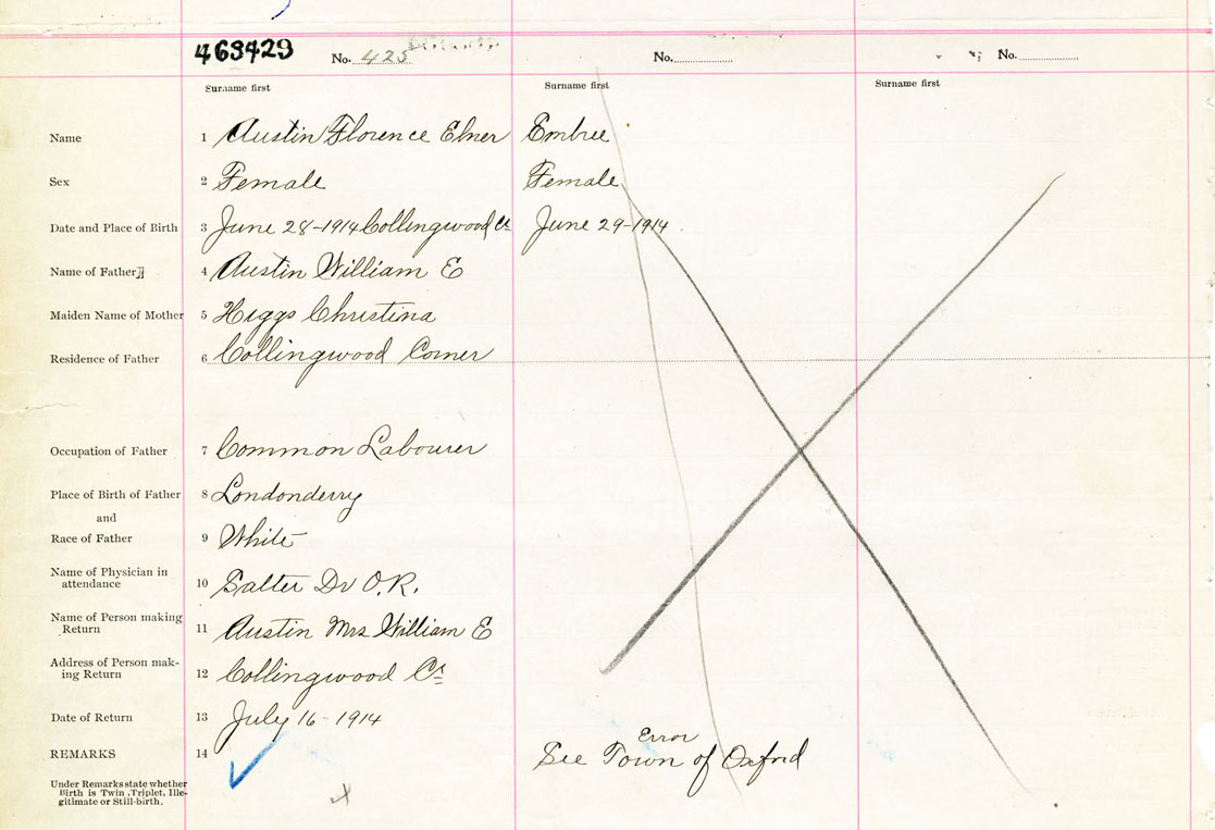Female Birth Registration: Year: 1914 number: 46300429