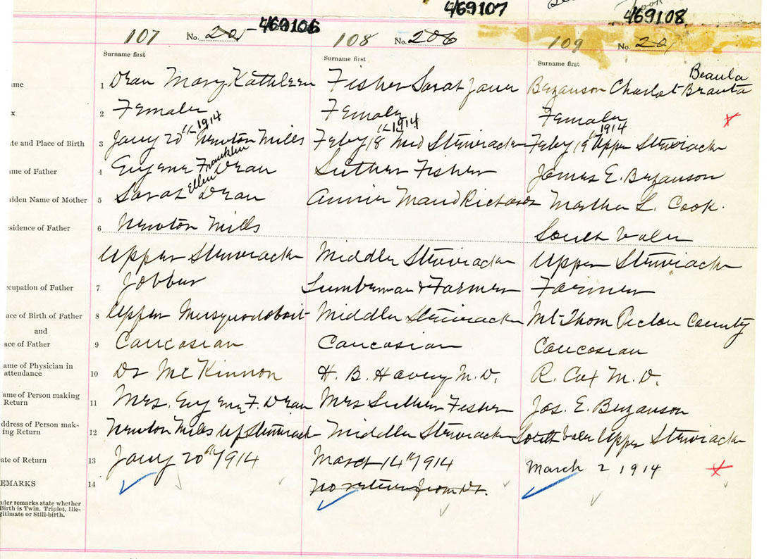 Female Birth Registration: Year: 1914 number: 46900108