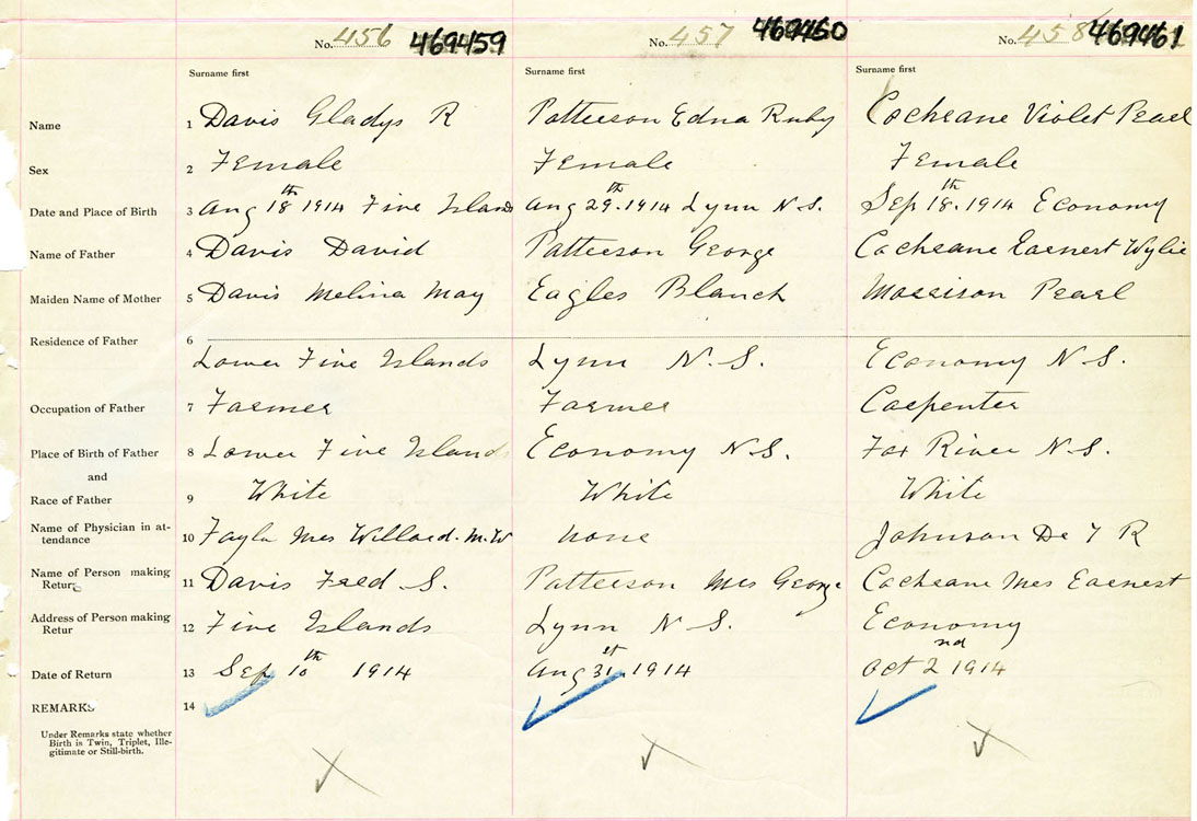 Female Birth Registration: Year: 1914 number: 46900461