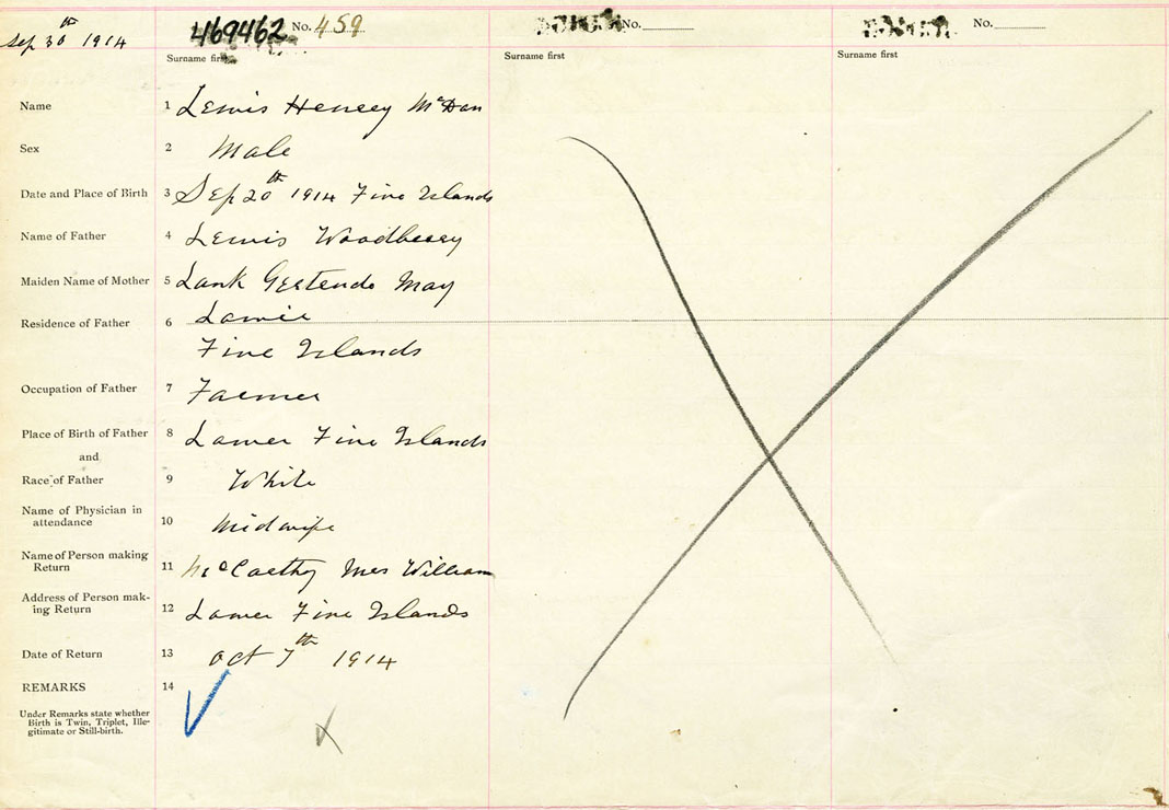 Male Birth Registration: Year: 1914 number: 46900462