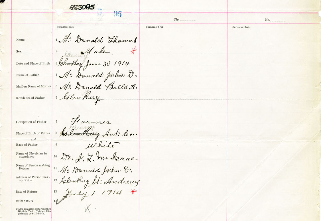 Male Birth Registration: Year: 1914 number: 48500095