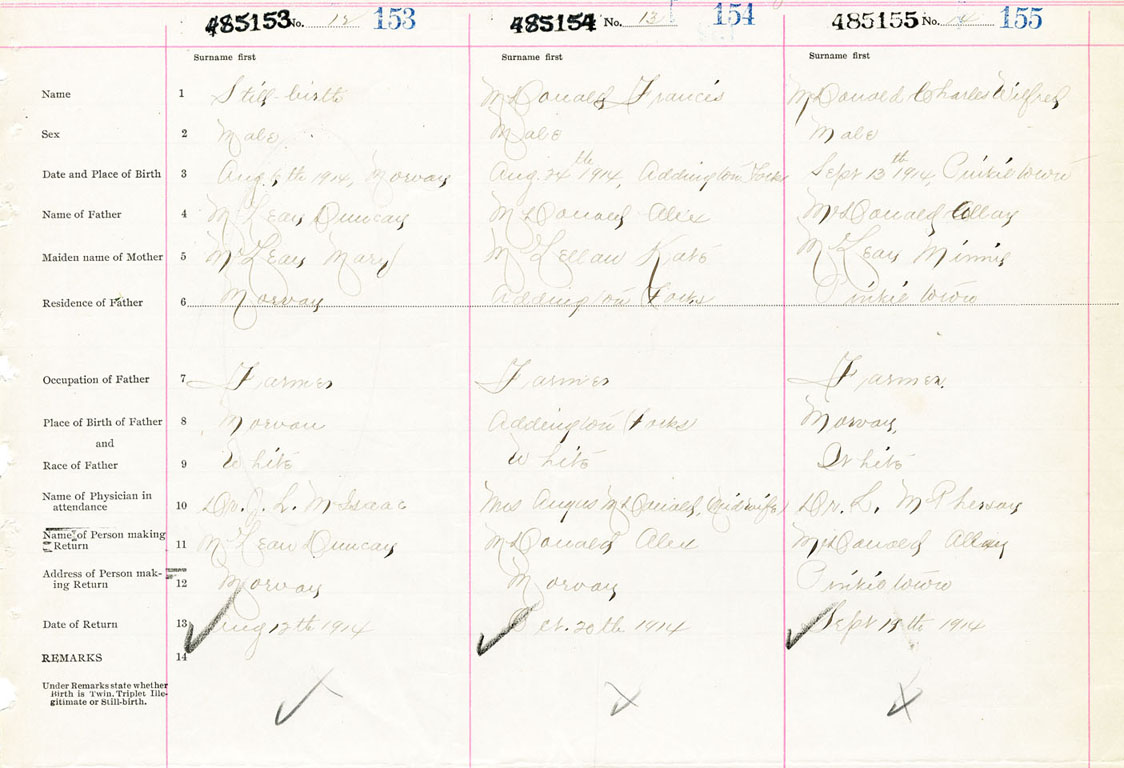 Male Birth Registration: Year: 1914 number: 48500155