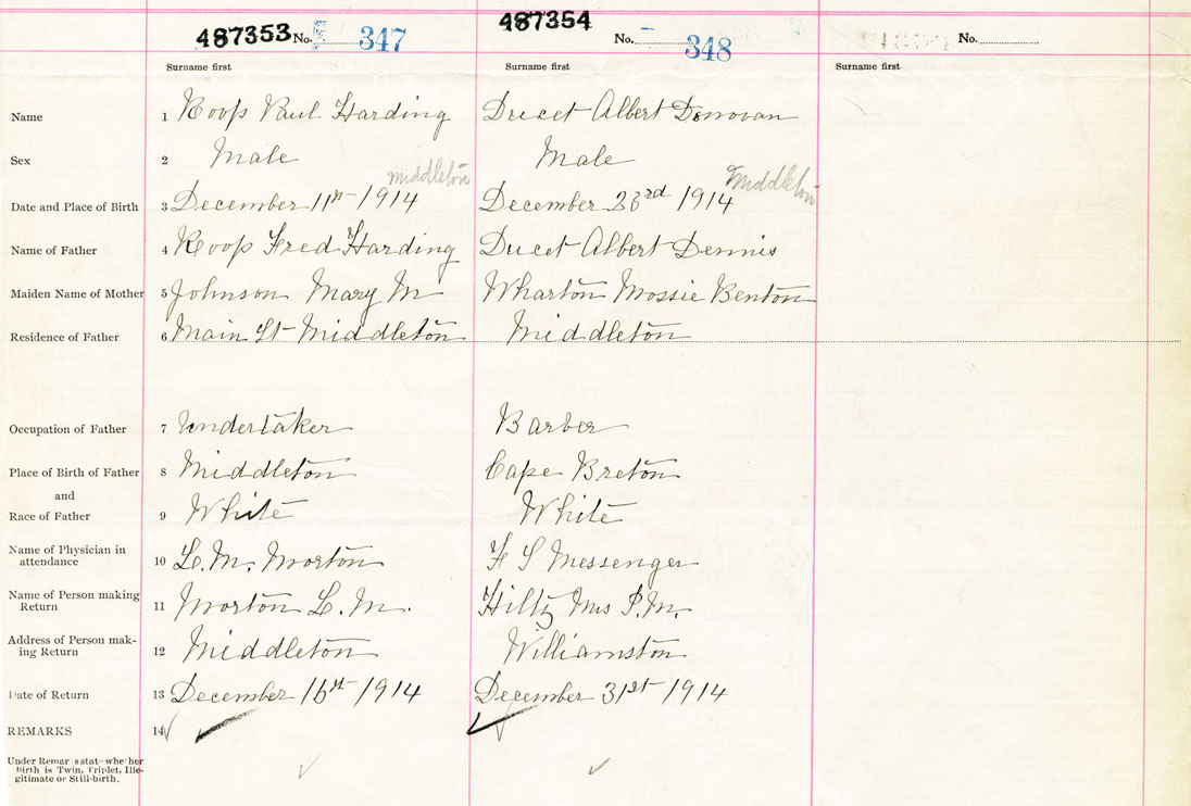 Male Birth Registration: Year: 1914 number: 48700354