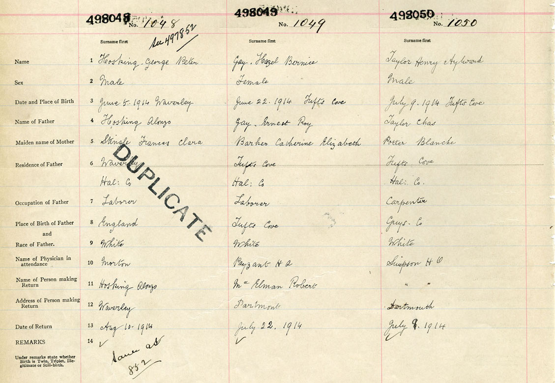 Male Birth Registration: Year: 1914 number: 49800048