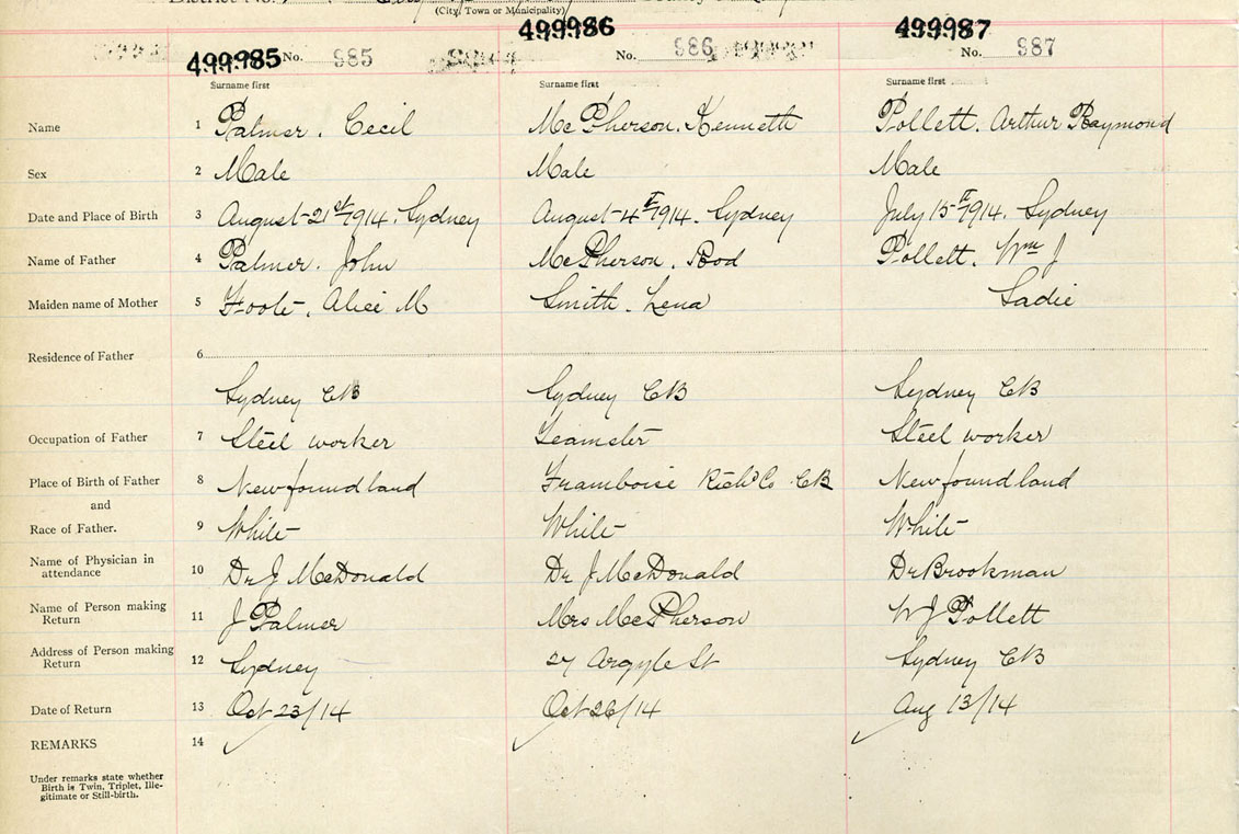 Male Birth Registration: Year: 1914 number: 49900987