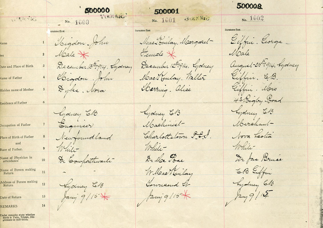 Male Birth Registration: Year: 1914 number: 50000002