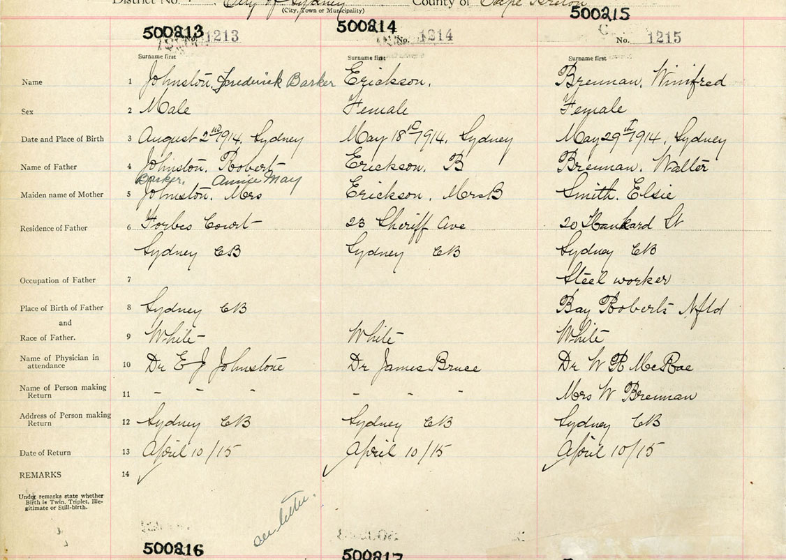 Male Birth Registration: Year: 1914 number: 50000213
