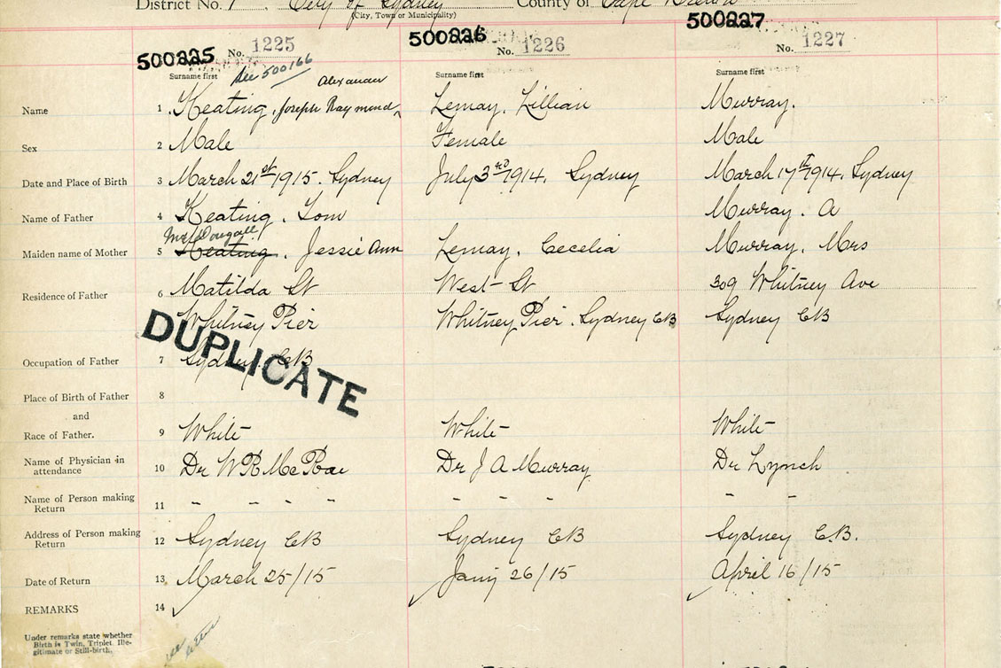 Male Birth Registration: Year: 1914 number: 50000225