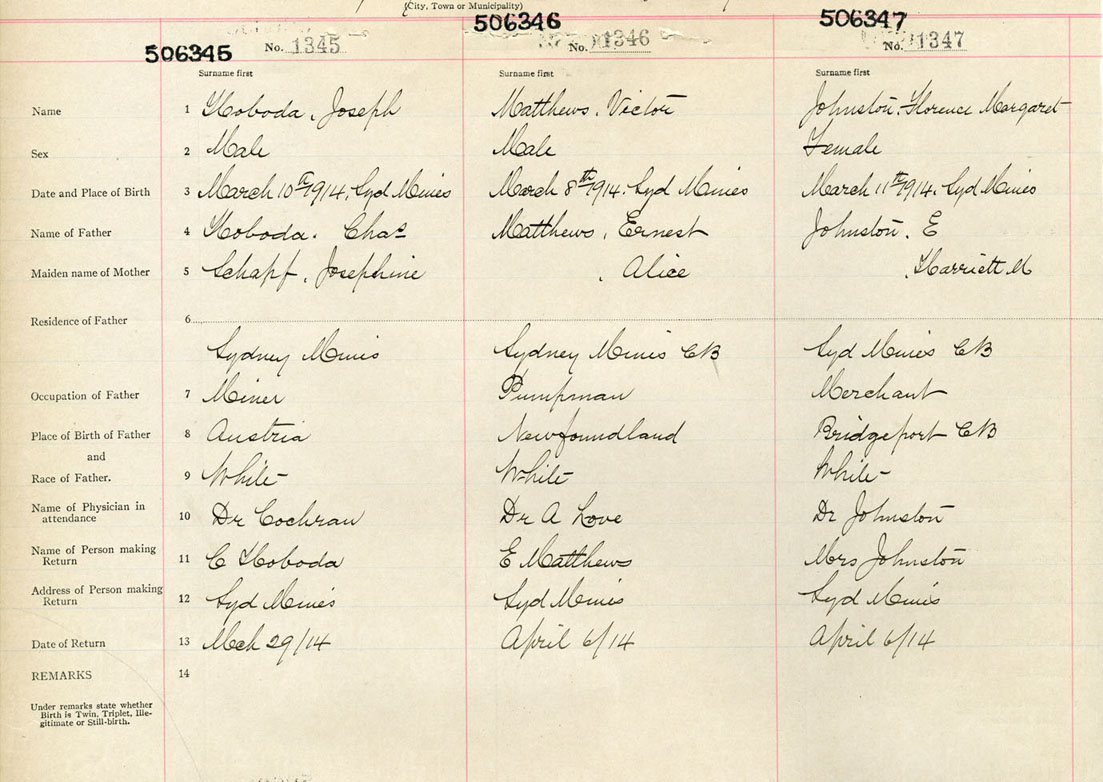 Male Birth Registration: Year: 1914 number: 50600345