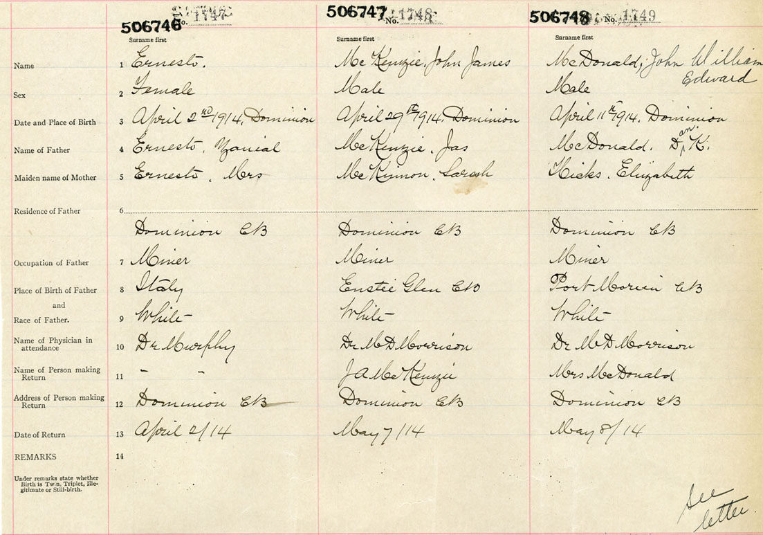 Male Birth Registration: Year: 1914 number: 50600748