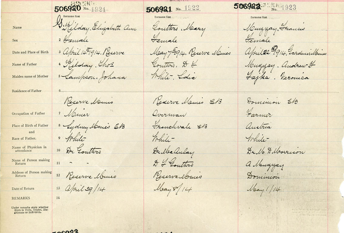 Female Birth Registration: Year: 1914 number: 50600920
