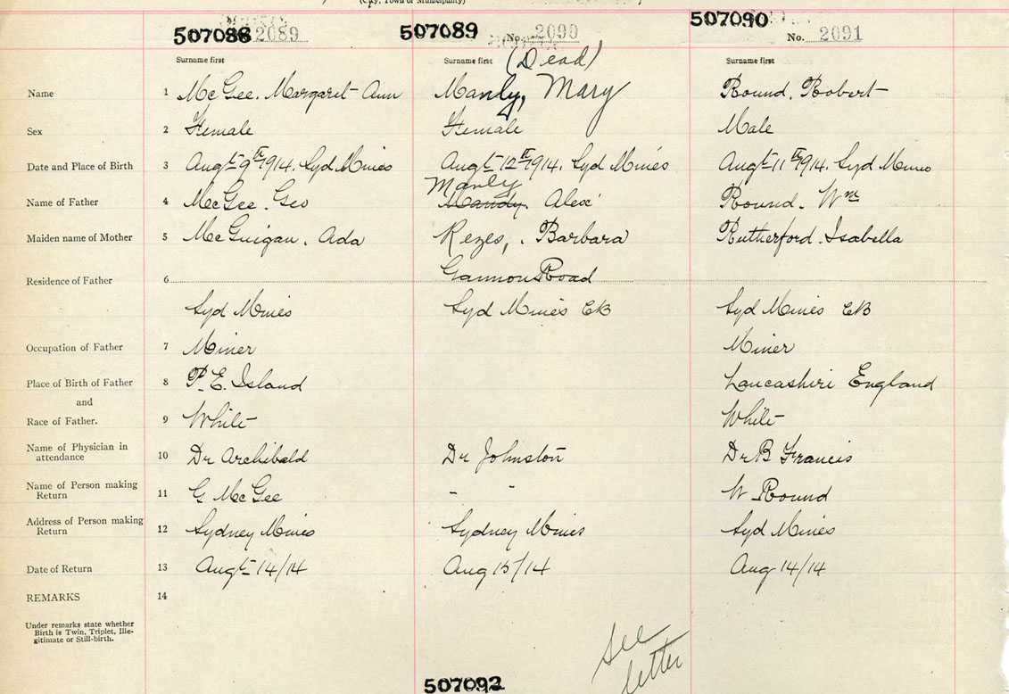 Male Birth Registration: Year: 1914 number: 50700090