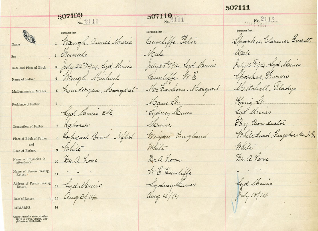 Male Birth Registration: Year: 1914 number: 50700111