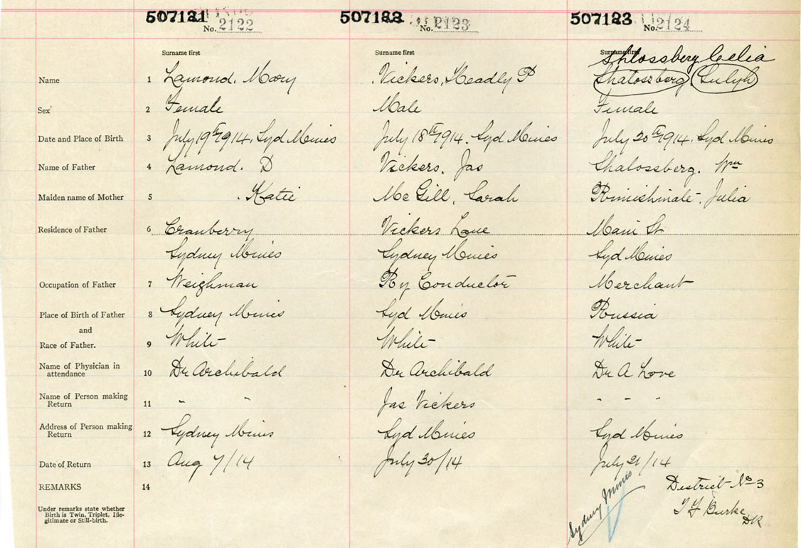 Female Birth Registration: Year: 1914 number: 50700123
