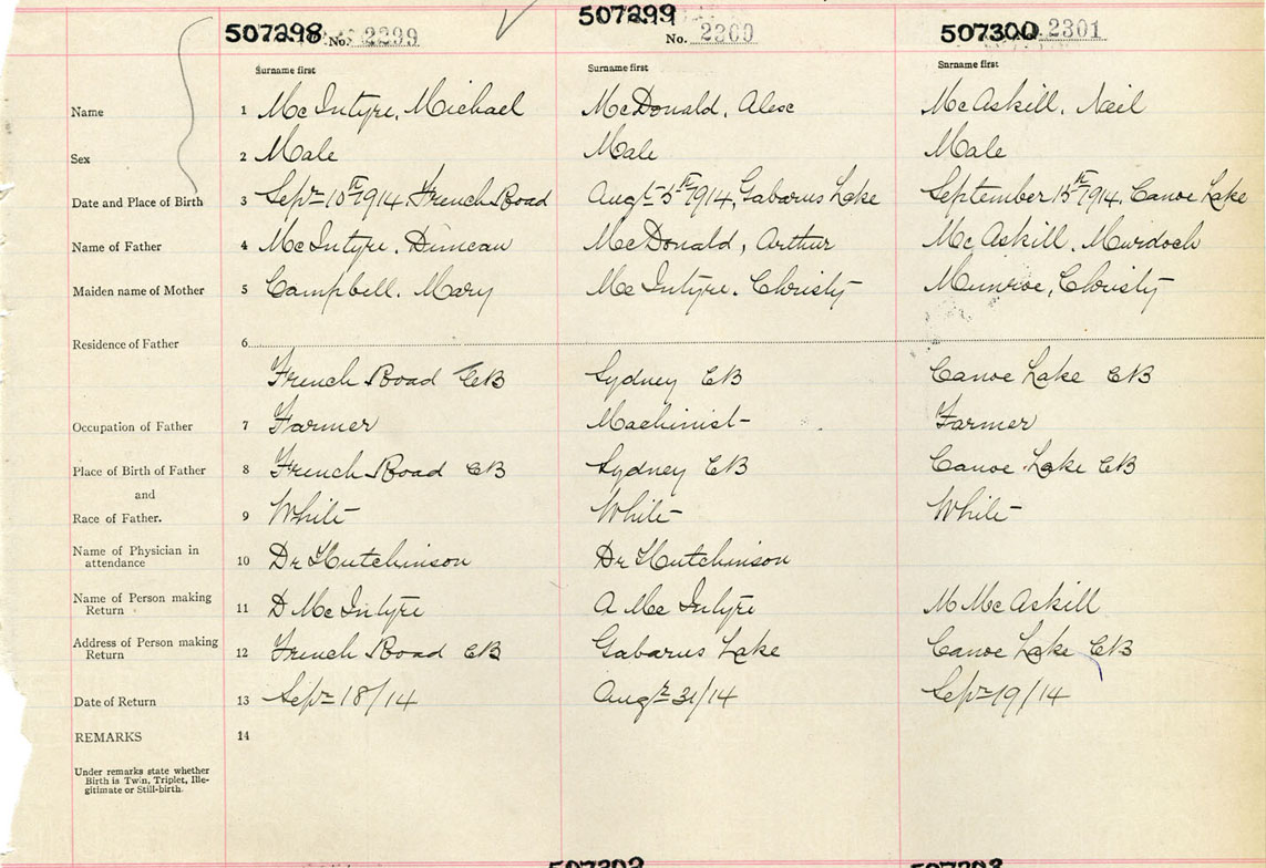Male Birth Registration: Year: 1914 number: 50700300