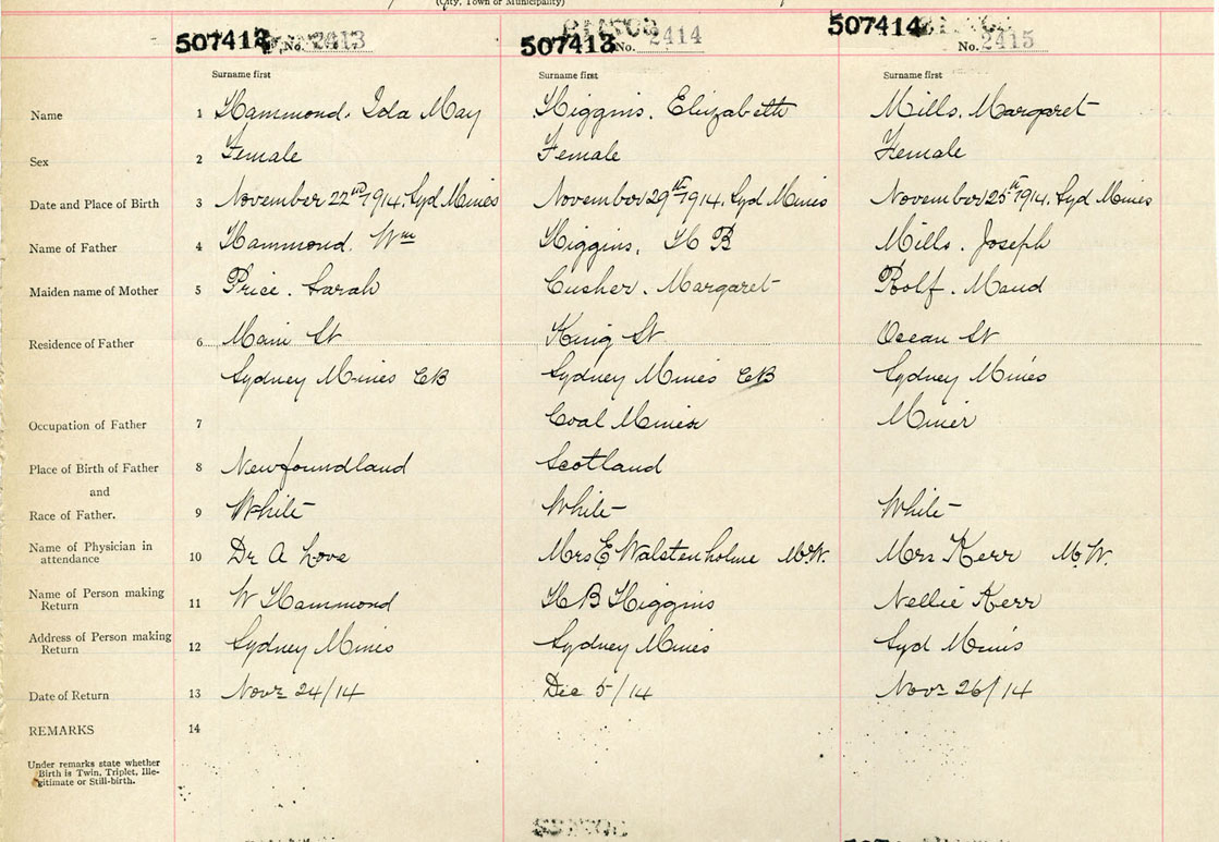Female Birth Registration: Year: 1914 number: 50700414