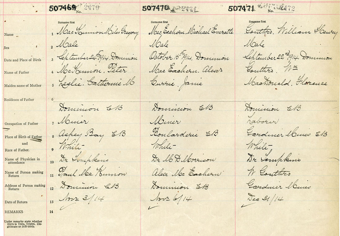Male Birth Registration: Year: 1914 number: 50700469