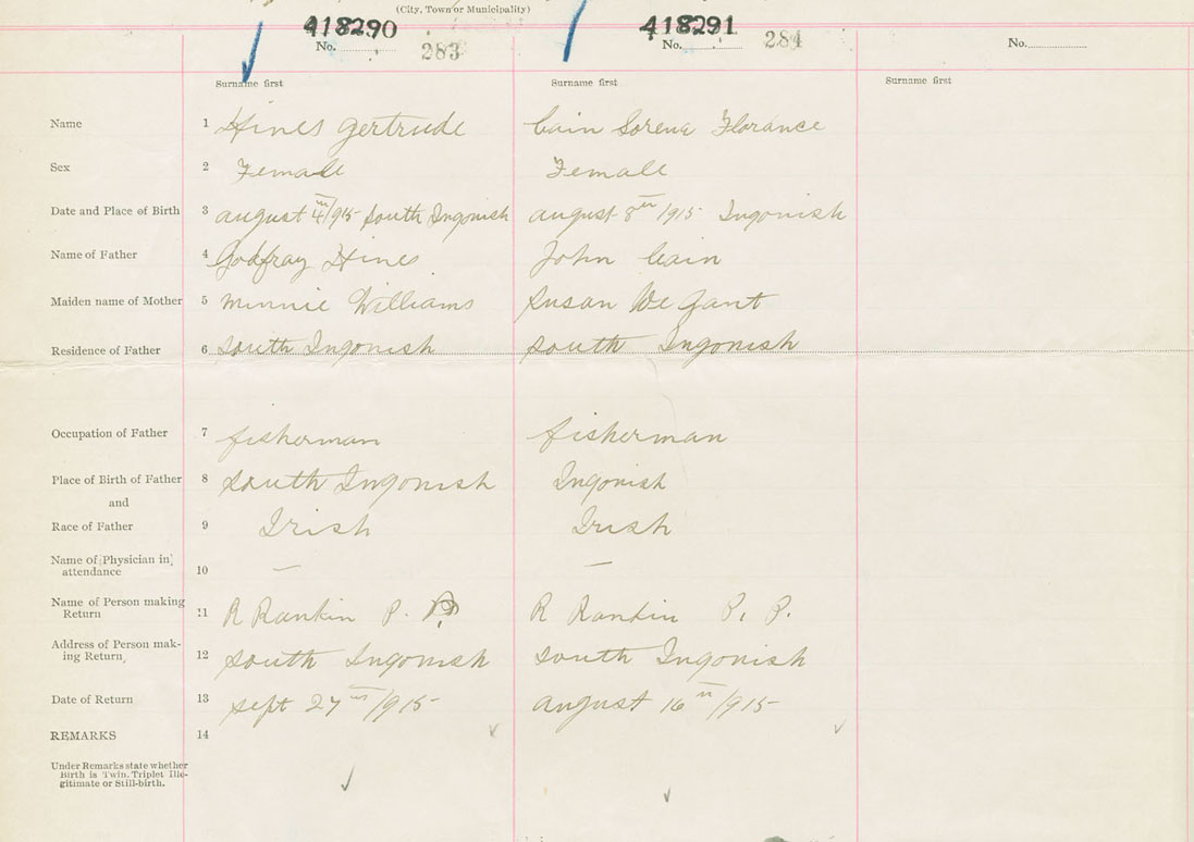 Female Birth Registration: Year: 1915 number: 41800291