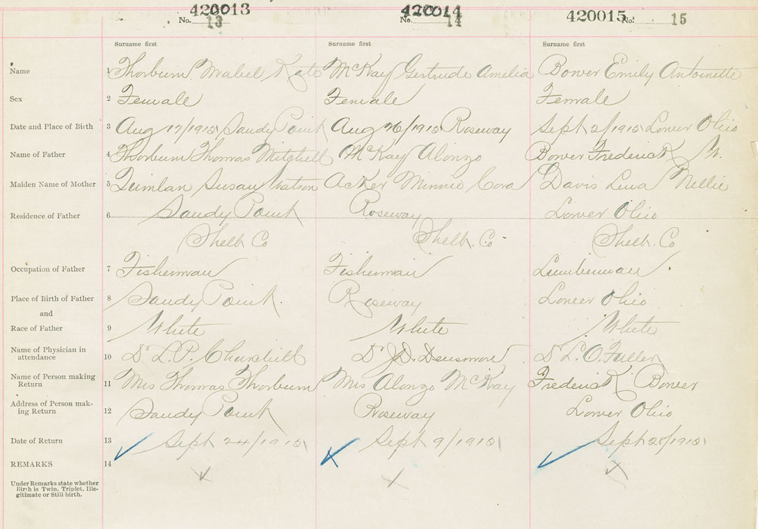Female Birth Registration: Year: 1915 number: 42000013