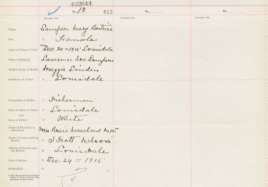 Female Birth Registration: Year: 1915 number: 42200644