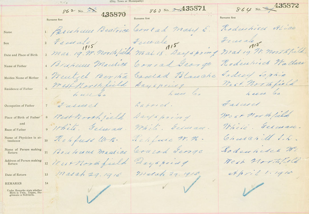 Female Birth Registration: Year: 1915 number: 43500870