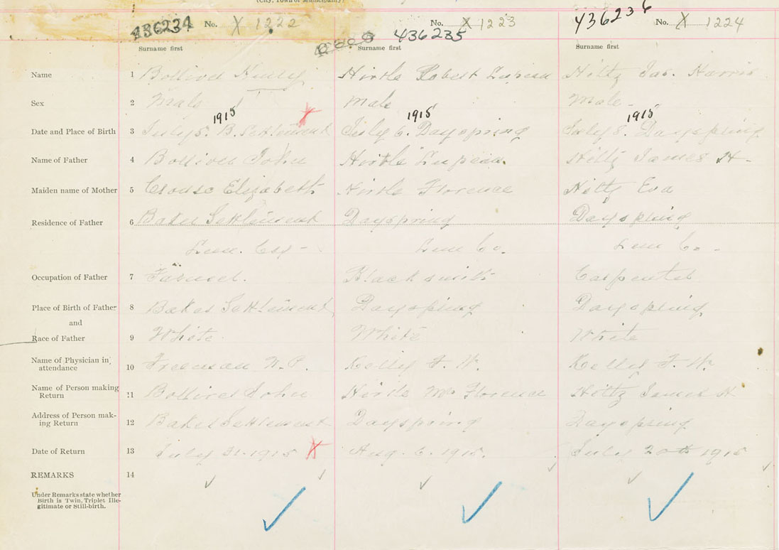 Male Birth Registration: Year: 1915 number: 43600234