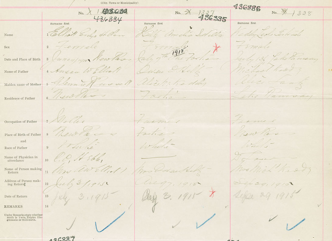 Female Birth Registration: Year: 1915 number: 43600334