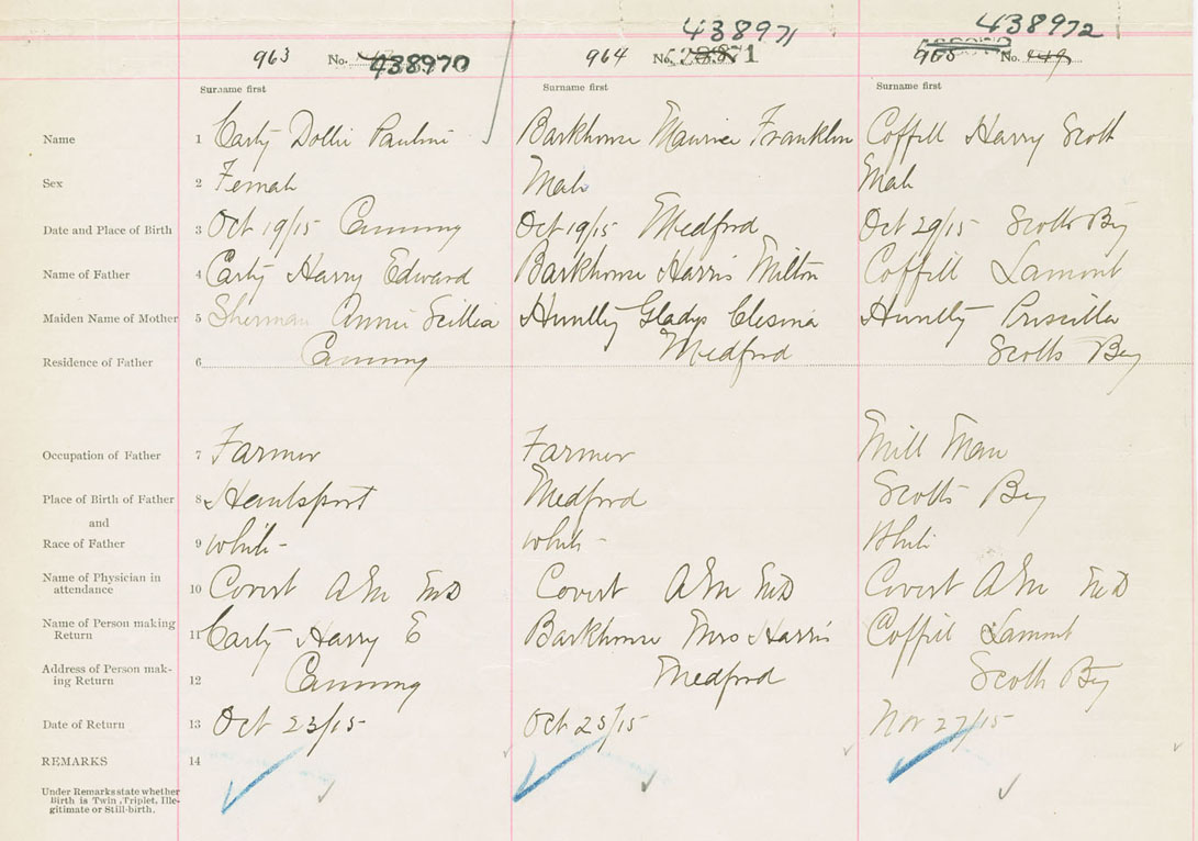 Male Birth Registration: Year: 1915 number: 43800972