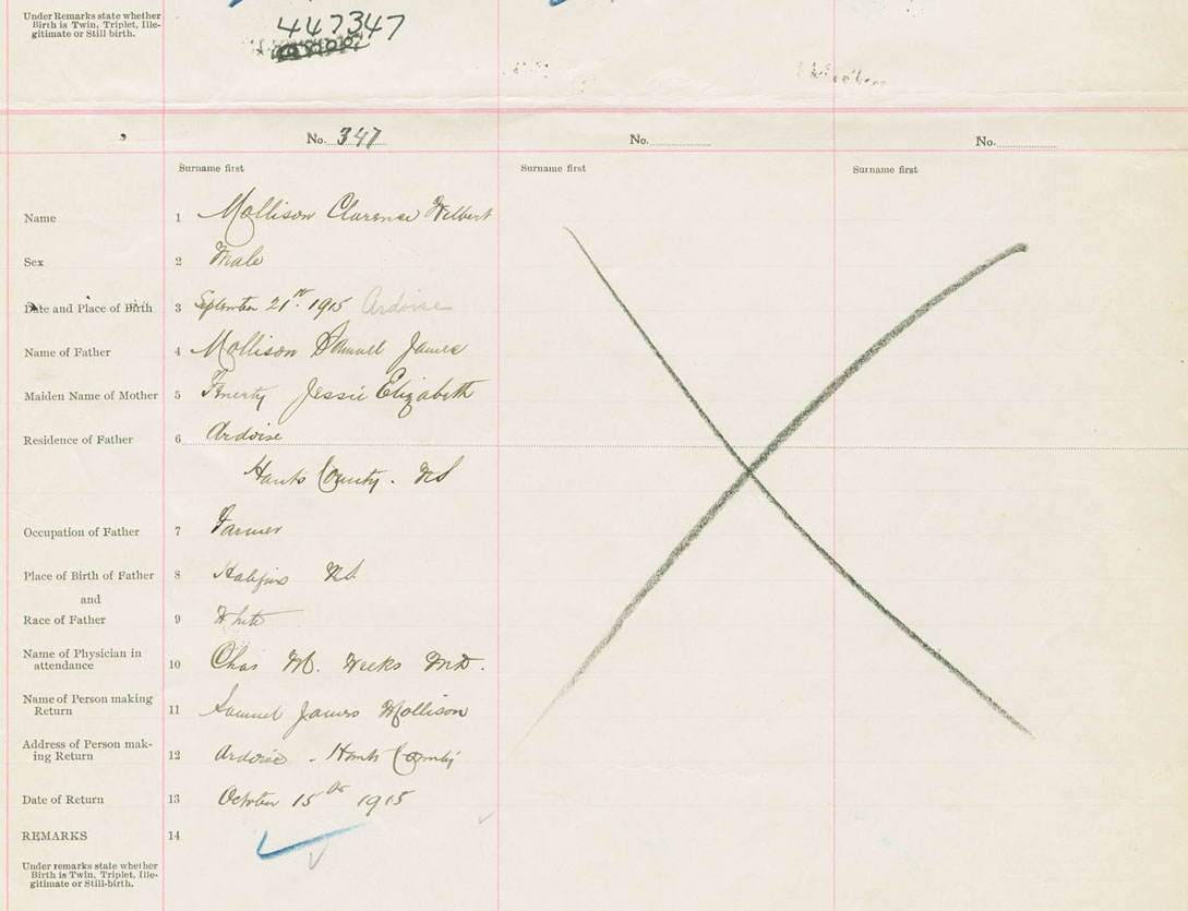 Male Birth Registration: Year: 1915 number: 44700347