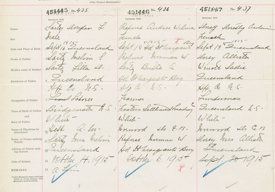 Male Birth Registration: Year: 1915 number: 45100445
