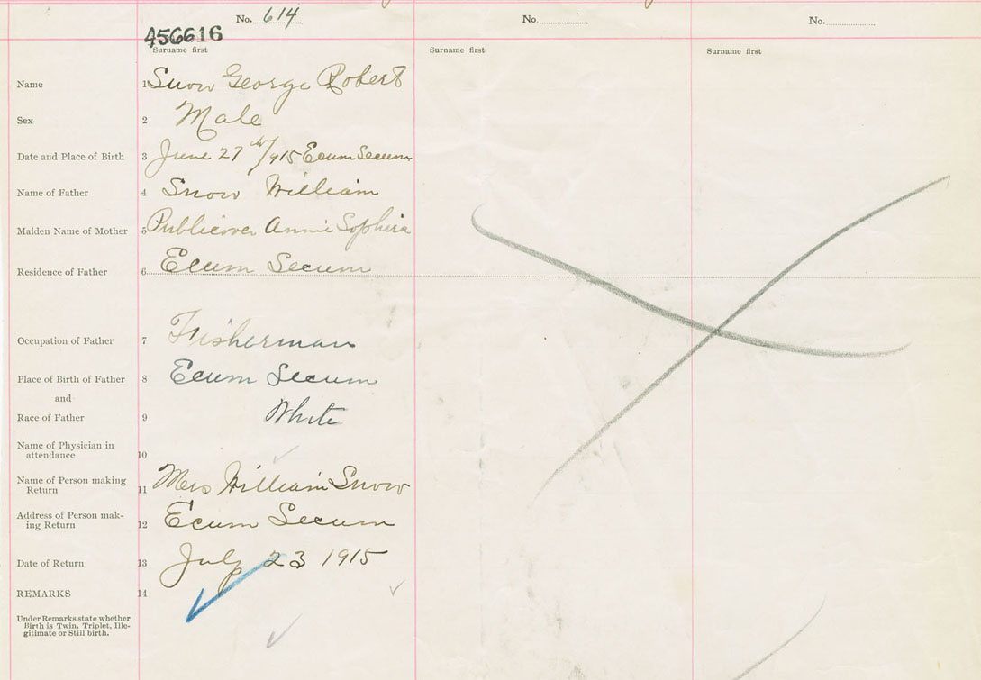 Male Birth Registration: Year: 1915 number: 45600616