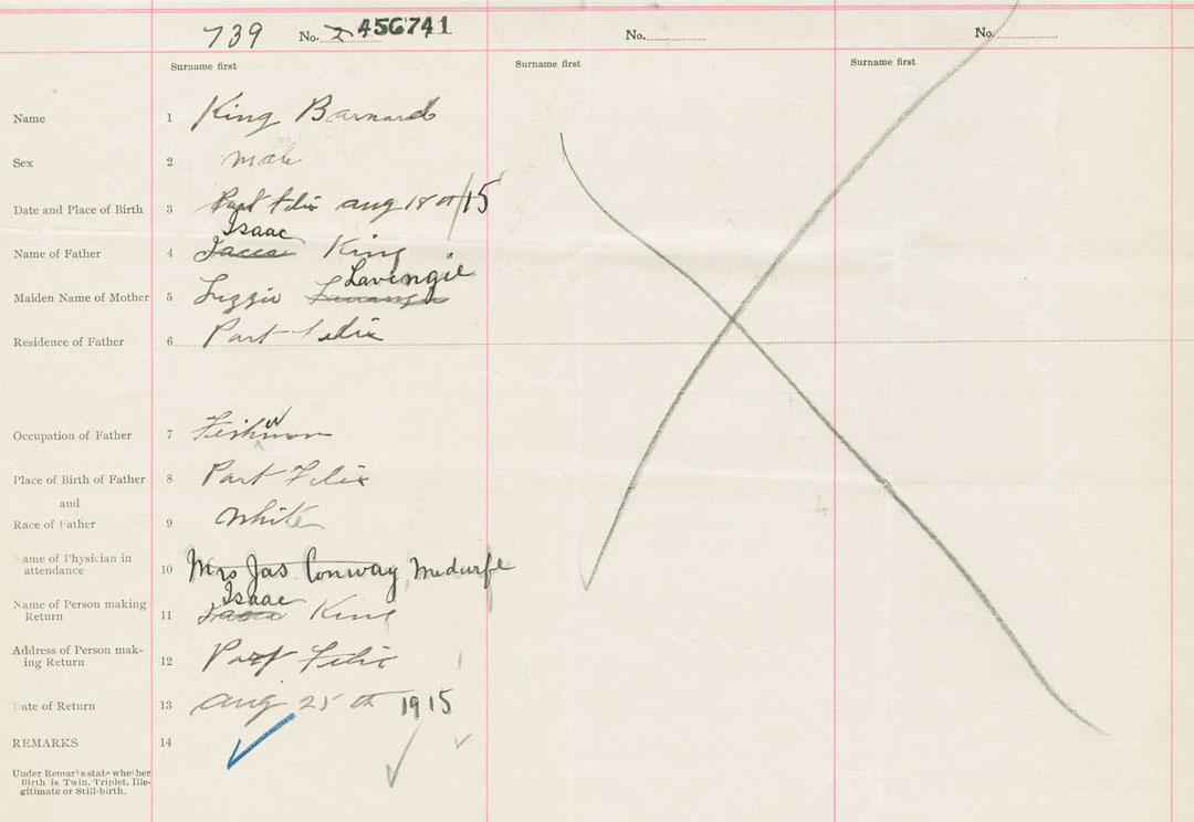 Male Birth Registration: Year: 1915 number: 45600741