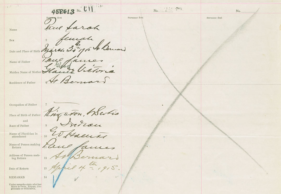Female Birth Registration: Year: 1915 number: 45800613