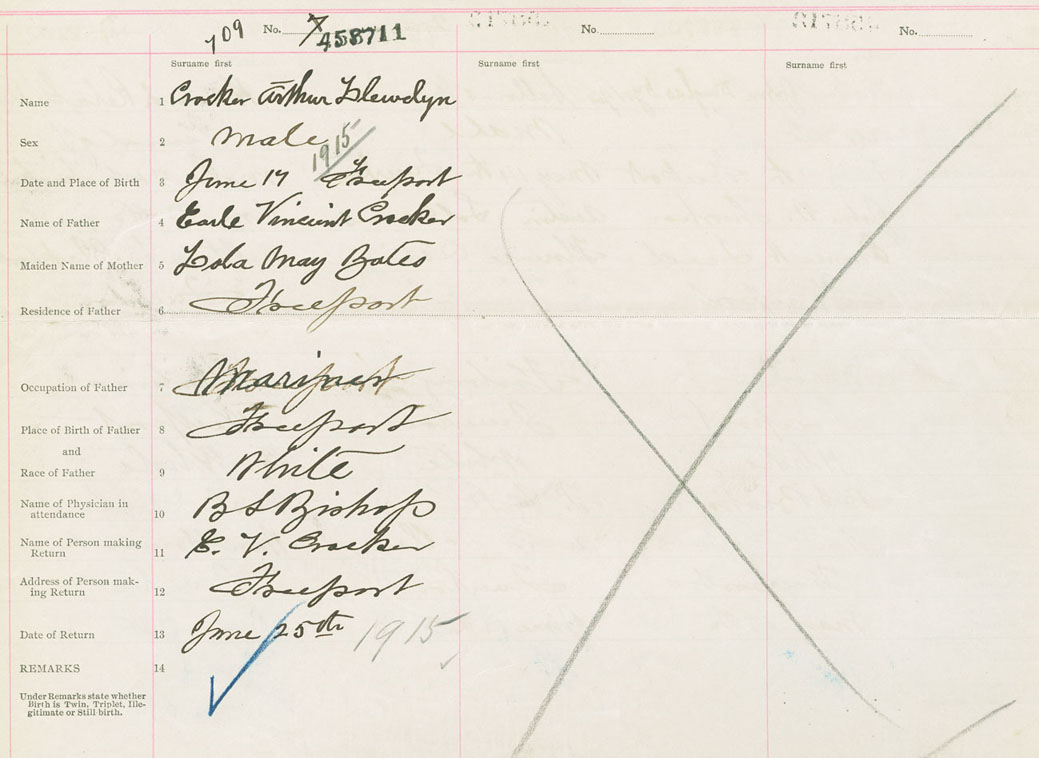 Male Birth Registration: Year: 1915 number: 45800711