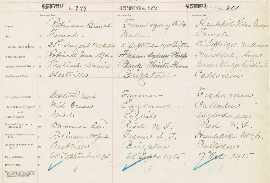 Female Birth Registration: Year: 1915 number: 45800801