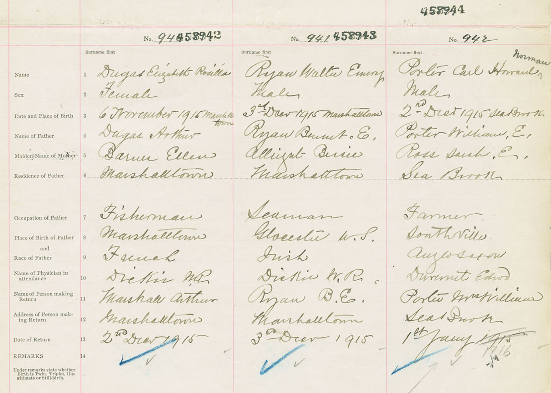 Male Birth Registration: Year: 1915 number: 45800944