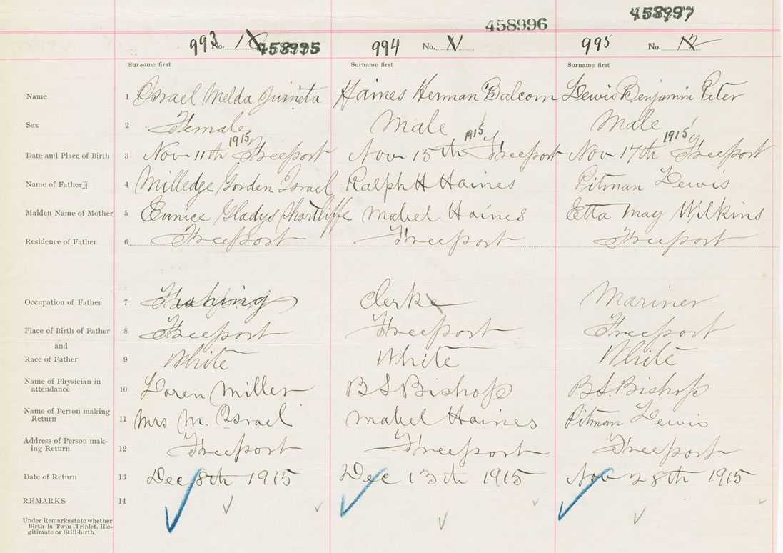 Female Birth Registration: Year: 1915 number: 45800995