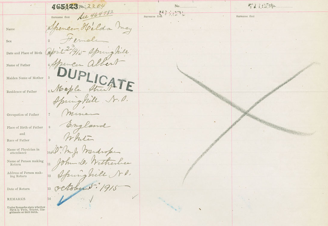 Female Birth Registration: Year: 1915 number: 46500123